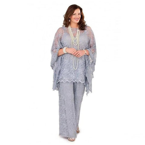 Order: 3PCS Grey Mother of the Groom Lace Pantsuits